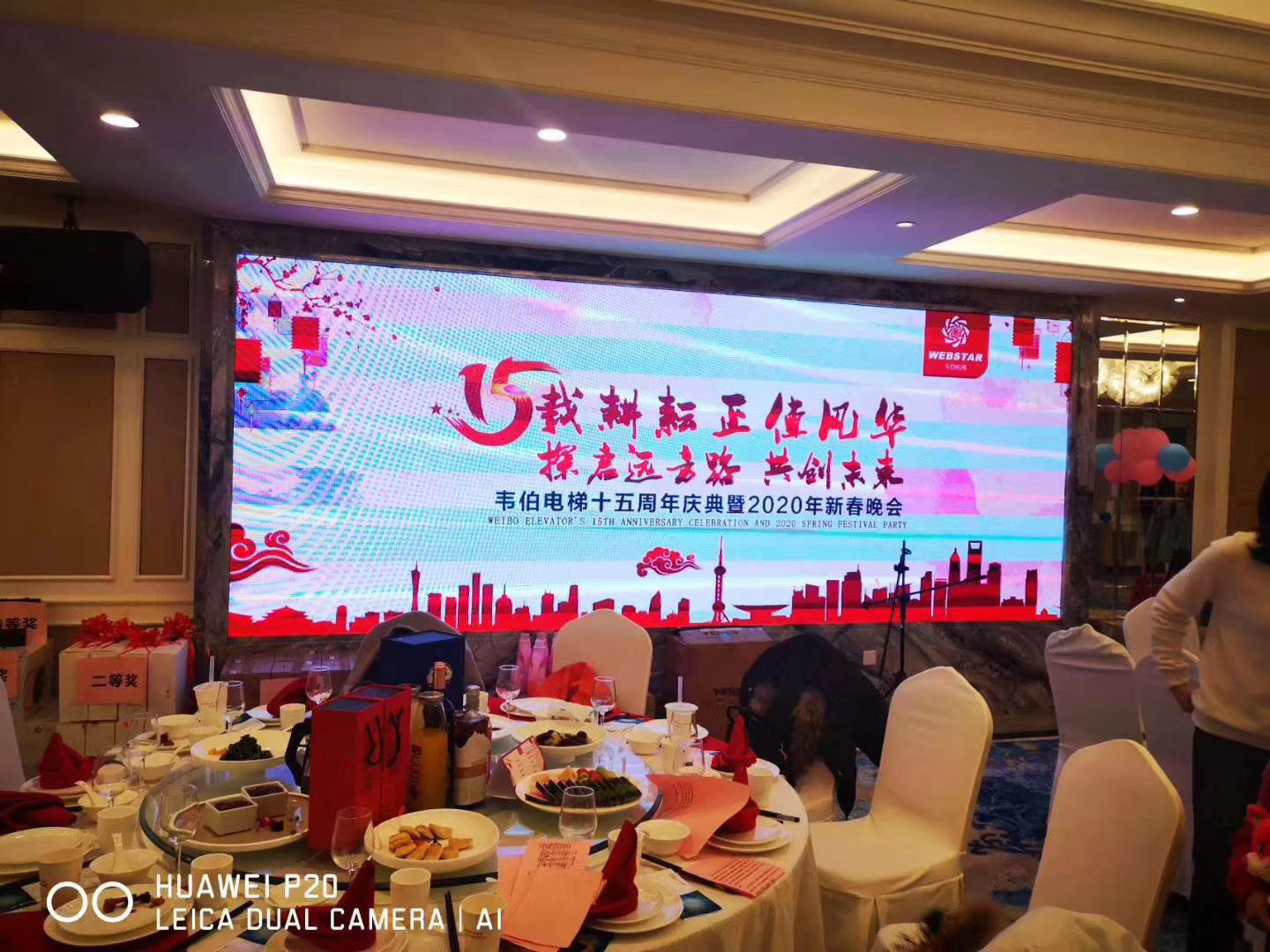 2020年1月17日晚5時38分,韋伯電梯有限公司成立十五周年慶典暨2020年新春晚會在廣弘華美達廣場酒店隆重舉行。晚會現場喜氣洋溢、氣氛歡樂!100余位韋伯大家庭的成員齊聚一堂,回顧以往,展望未來,熱烈慶祝韋伯成立十五周年!