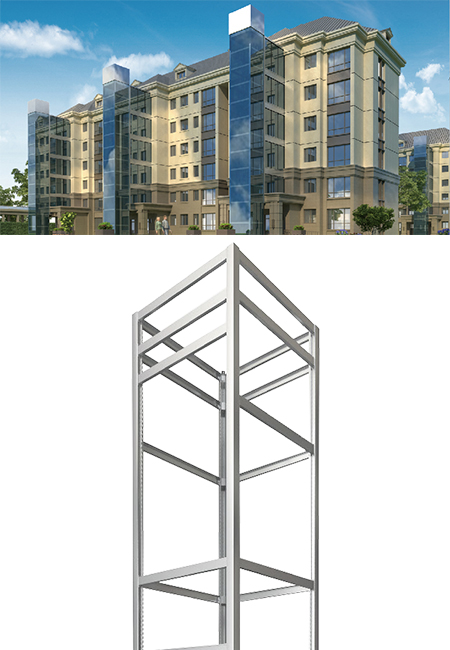 b、該框架一體化電梯不僅適用于各類多層外埋電梯的安裝,還可靈活地 運用于室內建筑加裝電梯的使用。